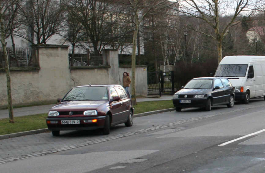 Und schon floh man vor dem Fotografen mit dem weinroten VW Golf (Kennzeichen NMB-JV 2).