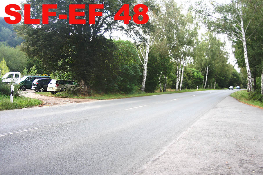 Erlaubt sind an dieser Stelle maximal 50 km/h. Gemessen wurde diesmal lediglich in Fahrtrichtung Jena. Das Messfahrzeug, ein dunkelgrüner VW Transporter mit dem Kennzeichen SLF-EF 48 stand abseits auf einer kleinen angrenzenden Parkfläche einer Gartenanlage auf der gegenüberliegenden Straßenseite.